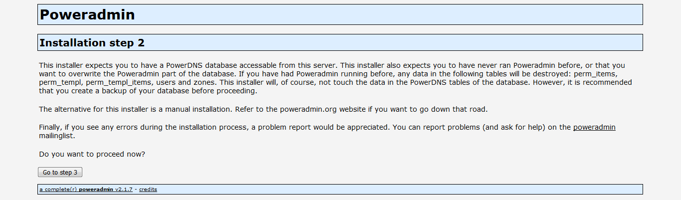 浏览器输入http://powerdns服务器IP/poweradmin/install/ 进入安装向导界面。